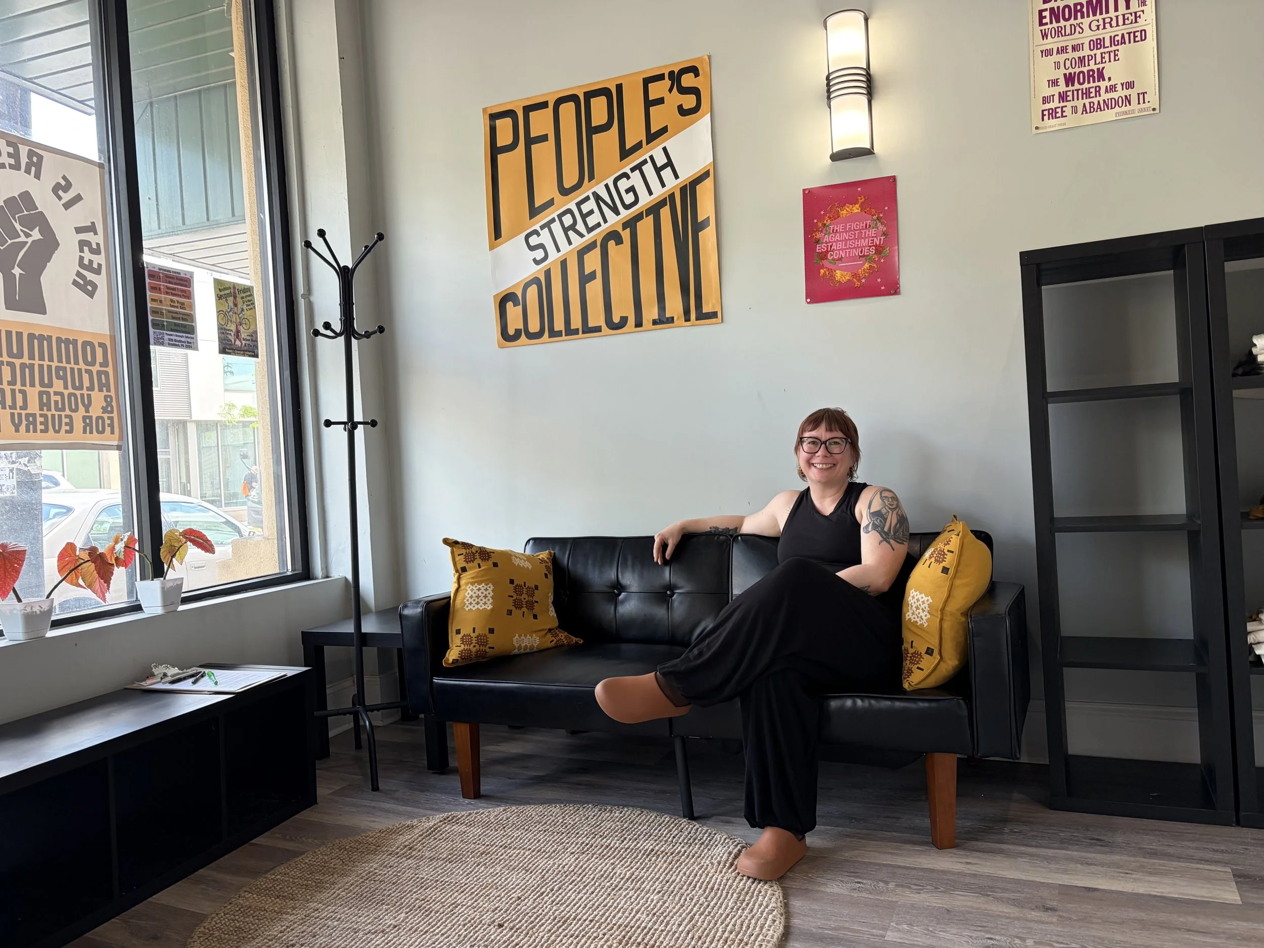 She started at Wilkinsburg’s Community Forge in March 2025 with seven clients and a crowdfunding campaign. Less than a year later, she had grown to approximately 200 regular clients. The Free Press Building offered Elizabeth room to grow, an accessible entrance, and central air. People’s Strength Collective now offers barbell, dumbbell, and kettlebell strength training with a powerlifting focus, one-on-one personal training, group classes, community acupuncture, and yin yoga sound baths.